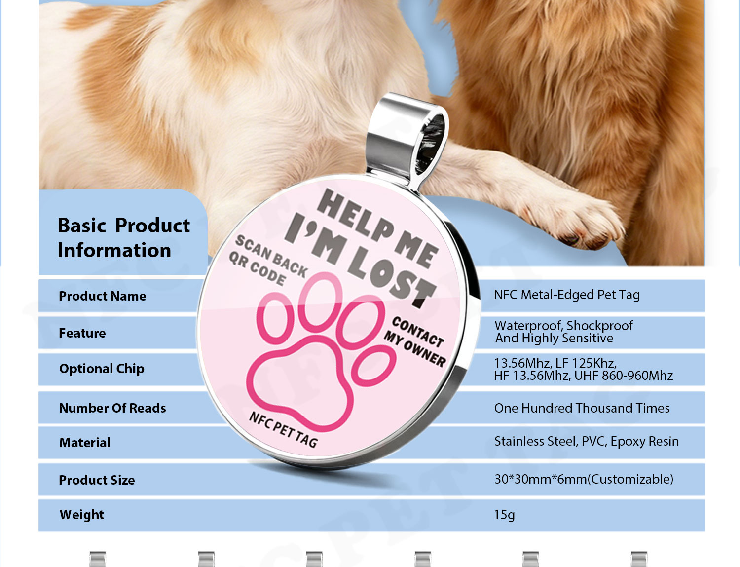 Premium Metal Edging: Style + Toughness in One Tag Looking for a pet tag that’s as stylish as it is strong? This NFC metal pet tag’s precision metal edging system blends sleek good looks with unbeatable structural integrity. Made from corrosion-resistant alloy, the metal frame wraps around the inner PVC chip carrier to block bending, dents, and fraying—ideal for adventure-loving, high-energy pets. And it’s not just tough: that metal edging adds a luxe, premium texture that turns a basic ID tag into a high-end pet accessory. Perfect for owners who want both function and fashion for their furry friends. |