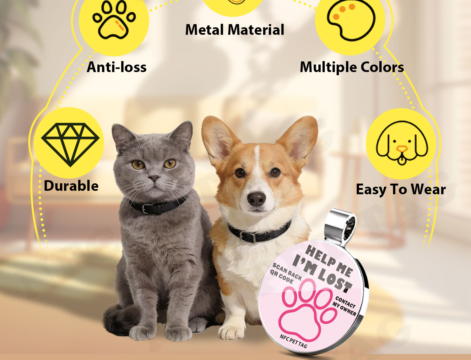 Made with tough zinc alloy metal! This tag is super durable, shrugging off scratches, bumps, and daily roughhousing—so it lasts way longer than flimsy alternatives.