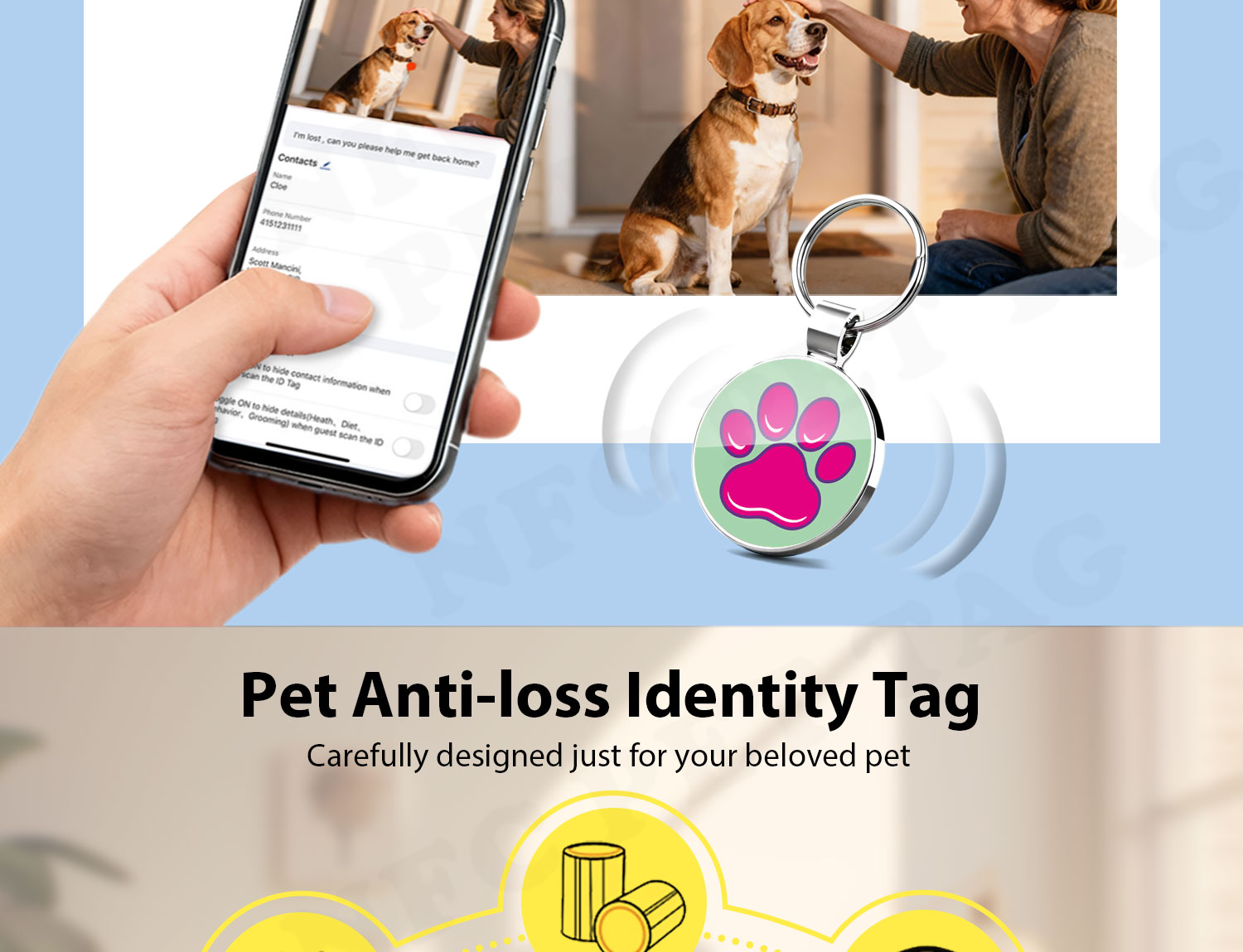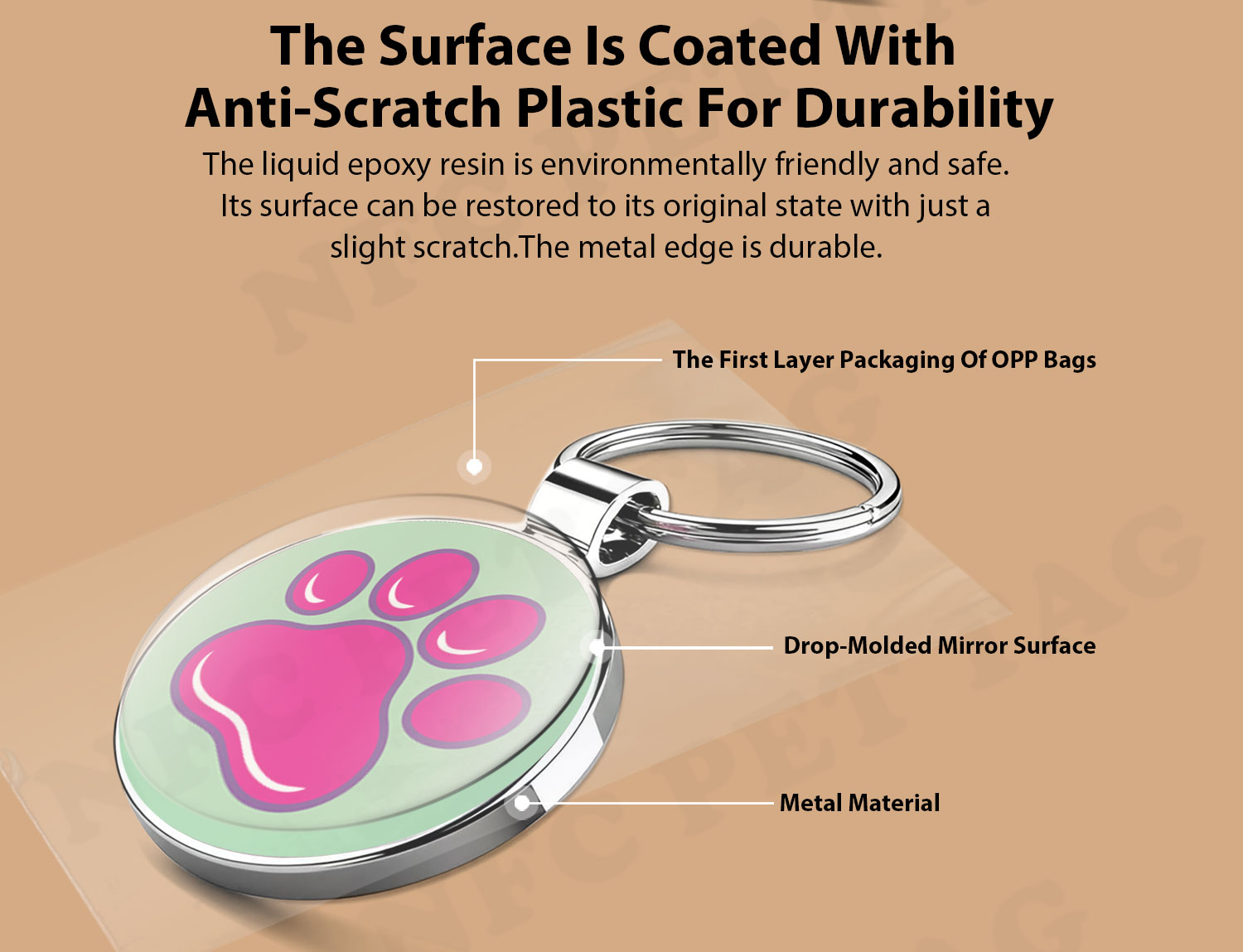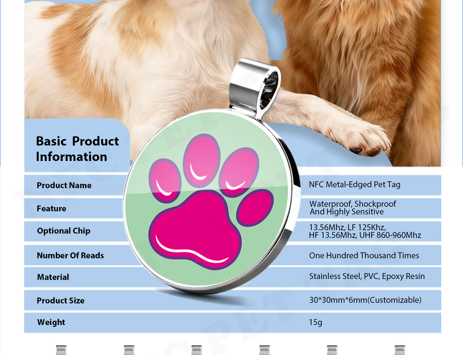 Embedded High-Frequency NFC Chip: Reliable Instant Data Retrieval Integrated within the PVC substrate is a high-frequency (13.56 MHz) NFC chip, compliant with ISO 14443A standards for universal compatibility with NFC-enabled devices. The chip supports secure, read-only data storage—capable of holding pet-specific information (e.g., owner contact details, medical records, microchip IDs) that can be retrieved instantly via a simple tap, no dedicated applications required. The chip’s encapsulation within the PVC-epoxy composite ensures stable performance, with a read range of up to 3 cm, enabling efficient data access in emergency scenarios. |