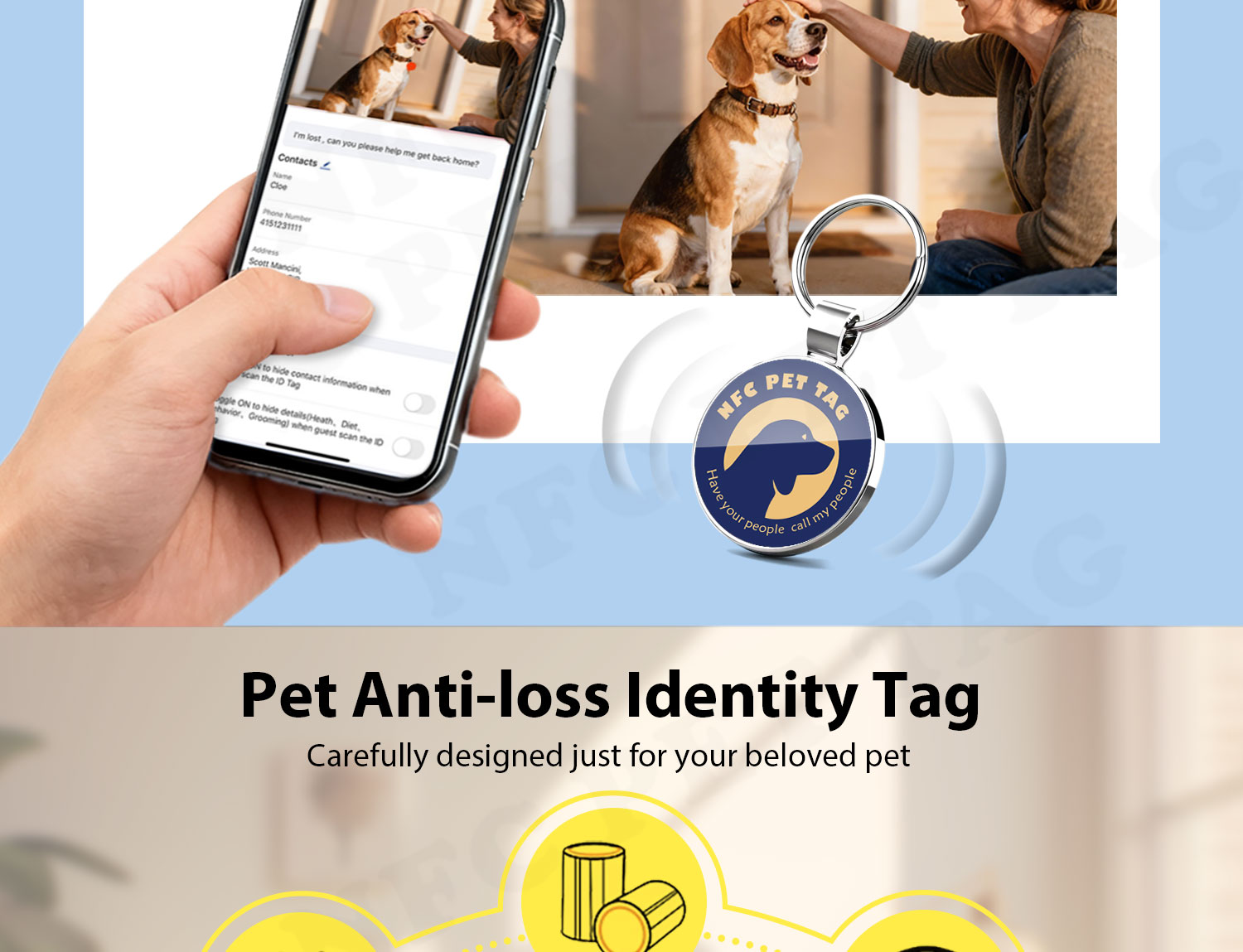 | Applications | NFC pet tags for pets lost and found,etc |