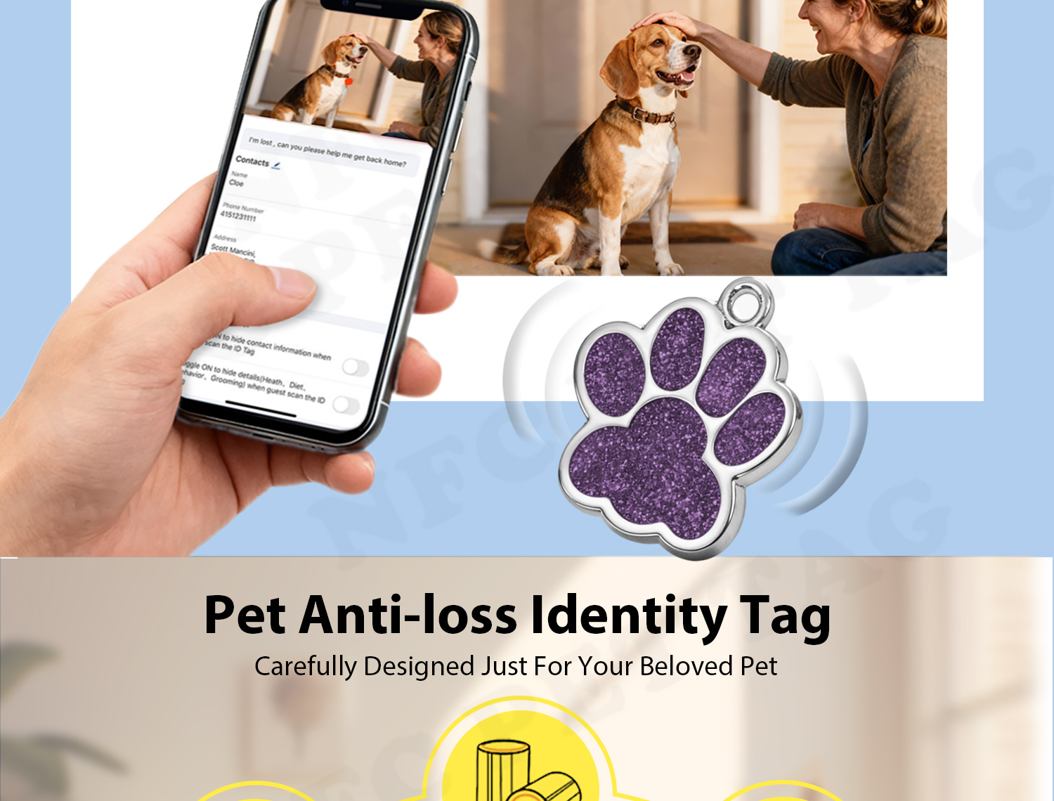 | Applications | NFC pet tags for pets lost and found,etc |