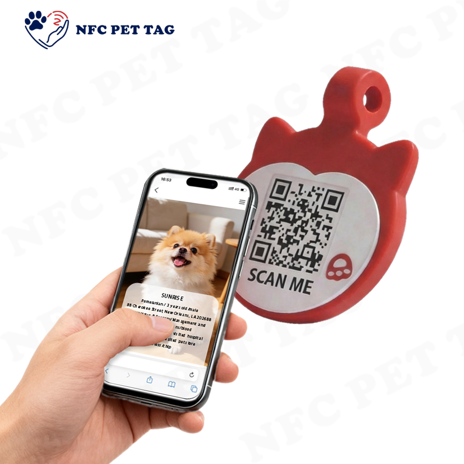 | Advantags | Our NFC silicone pet tags are engineered to stand up to pets’ rough-and-tumble play—scratch, water and impact resistant, with zero fading or rust over time. The laser-engraved QR code is silicone-sealed and protected, scannable with any smartphone, no special tools required. It connects to an updatable digital profile for seamless traceability, allowing you to edit your contact details and your pet’s medical information anytime. The rugged silicone casing keeps the QR code fully scannable even when muddy or wet; if your pet gets lost, finders simply scan the code to contact you quickly via call or message, helping your furry friend get home safe and fast. |