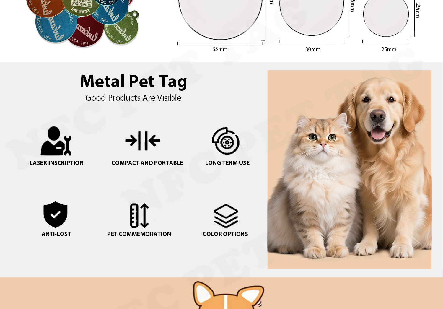 Crafted specifically for big pups like German Shepherds and Great Danes, this metal NFC pet tag merges rock-solid sturdiness with heavy-duty durability. Its thick metal casing stands up to impact, scratches, and even aggressive chewing—effortlessly handling the rough-and-tumble playstyle and sheer strength of large dogs. The embedded NFC chip and QR code are fully sealed for total protection, staying damage-free through hikes, training sessions, and all outdoor escapades. Sized perfectly to match large collars, it delivers maximum visibility without the bulk. Plus, it’s 100% waterproof and weatherproof, performing flawlessly in rain, snow, and saltwater—making it the ultimate companion for adventure-loving large breeds.