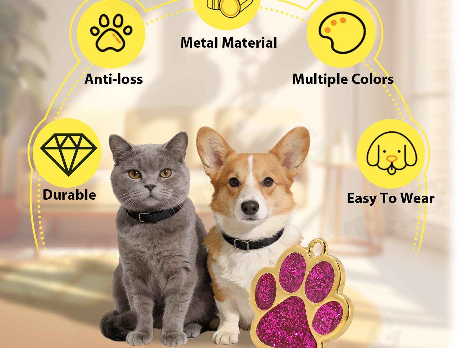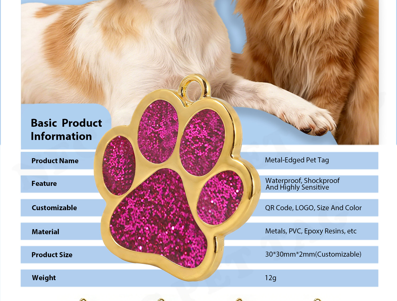 CustomizationMake your pet’s tag truly one-of-a-kind! Metal tags let you go all out with custom touches—vibrant enamel accents, cool embossed patterns, or even your favorite inside joke as a personalized message. Because your pet deserves an ID tag as special as they are!