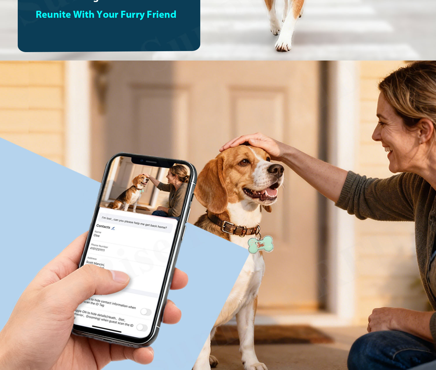 Custom QR code = fast track to reunion! A single scan pulls up all your pet’s key info—so if they ever get lost, anyone can reach you right away. No more stressful waits, just quick, easy reunions.