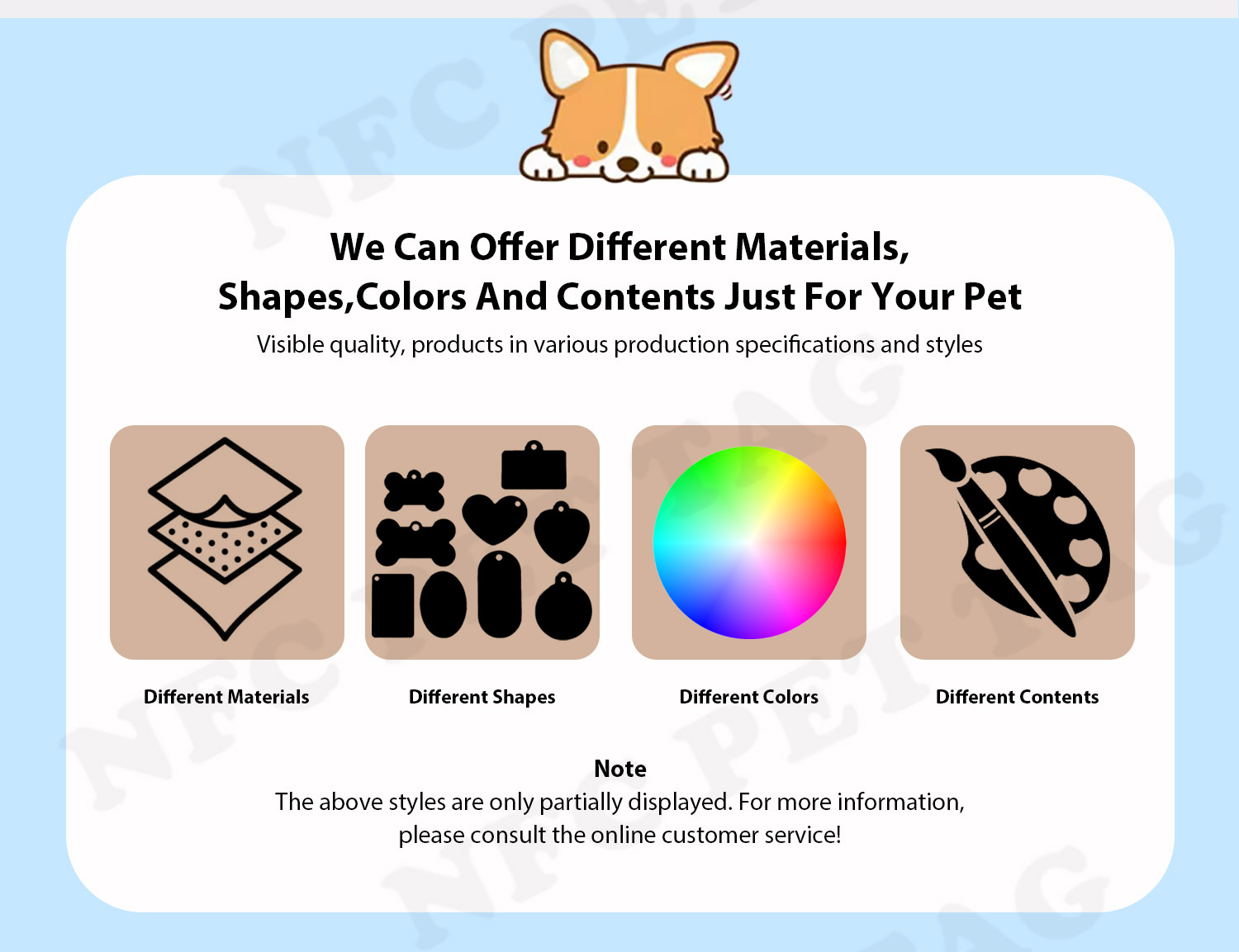 | Applications | NFC pet tags for pets lost and found,etc |