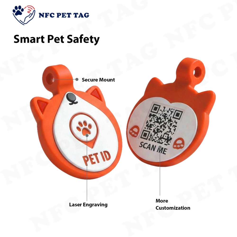 | Advantags | Our NFC silicone pet tags are engineered to stand up to pets’ rough-and-tumble play—scratch, water and impact resistant, with zero fading or rust over time. The laser-engraved QR code is silicone-sealed and protected, scannable with any smartphone, no special tools required. It connects to an updatable digital profile for seamless traceability, allowing you to edit your contact details and your pet’s medical information anytime. The rugged silicone casing keeps the QR code fully scannable even when muddy or wet; if your pet gets lost, finders simply scan the code to contact you quickly via call or message, helping your furry friend get home safe and fast. |