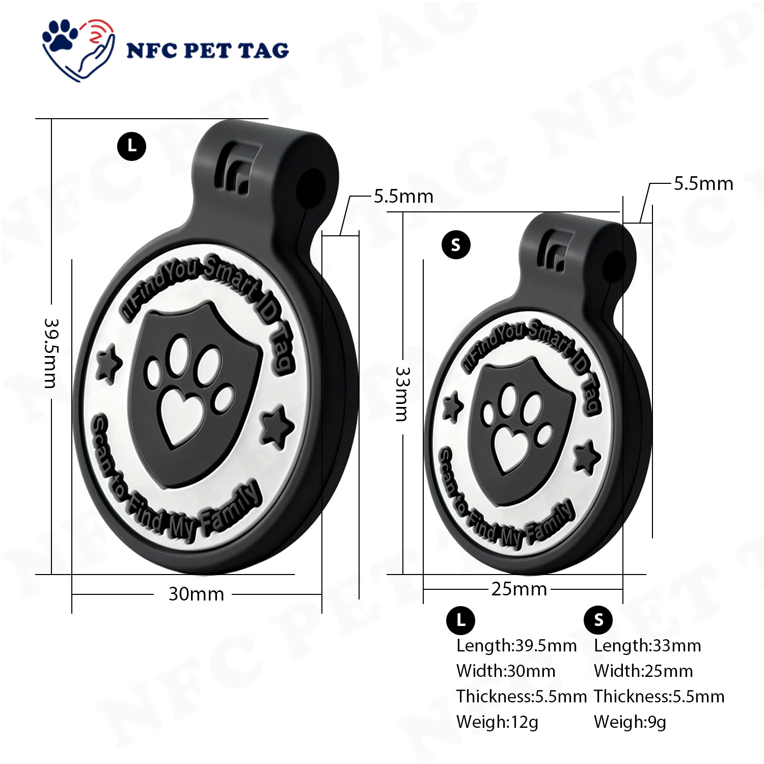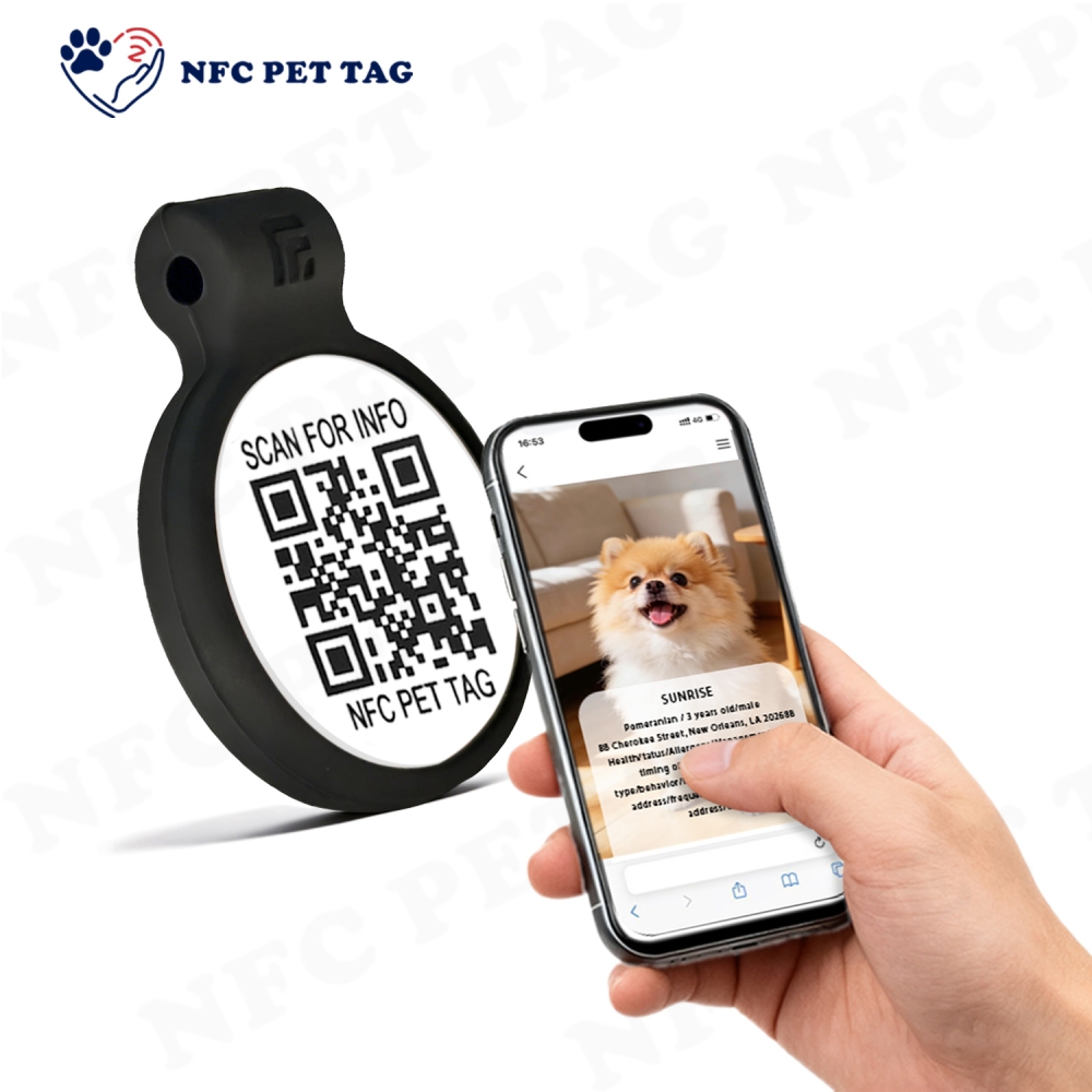| Advantags | Crafted with a redundant dual ID system that fuses an embedded NFC chip and a high-contrast QR code, this premium NFC pet tag takes pet ID security to unprecedented heights with dual-layered, fail-safe protection. When mobile NFC capabilities are down—whether from dead phone batteries, weak signals, or technical glitches—the high-contrast QR code kicks in as a rock-solid contingency plan; the NFC chip, meanwhile, maintains full functionality even if the QR code is blurred by scratches, stained by mud, or fully obscured by debris. Your pet’s vital ID information is instantly accessible 24/7, anywhere in the world—free from technical disruptions or performance lapses—delivering the industry-leading reliability that discerning pet parents trust to safeguard their beloved companions. |