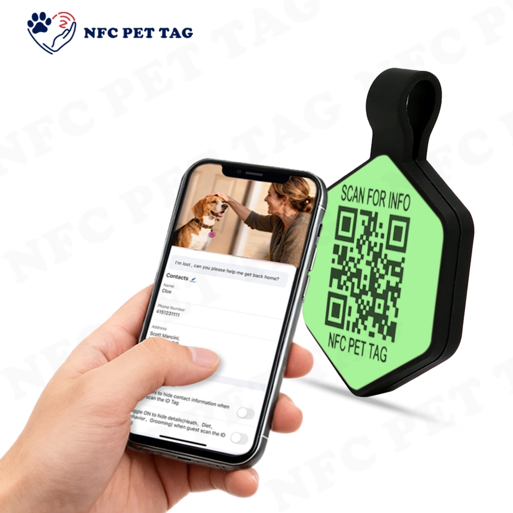 Silicone PET Tag forget fumbling with apps or unreadable tags! Inside its soft, skin-gentle silicone shell, dual instant-trace tech takes the delay out of recovery:1-Tap NFC Access: No downloads, no waits—finders tap the tag with any smartphone, and your pet’s name + your number pop up immediately. No more hunting for shelter contacts or waiting for calls.2-Scan-to-Connect NOW: The laser-engraved QR code (protected by tough silicone) links straight to your profile—scan once, and finders can call