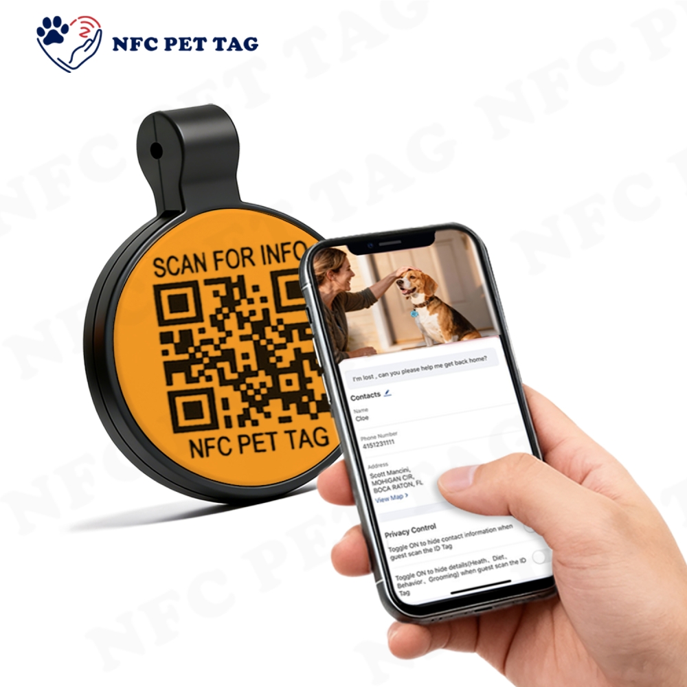 | Advantags | This soft silicone pet tag pairs an NFC chip with a high-contrast QR code to create a dual-trace security system—doubling your chances of bringing your lost pet home fast. Kind strangers who find your pet can choose the most convenient way to get in touch: tap the tag with an NFC-enabled phone, or scan the clear QR code. No more limited access due to different device types! This dual-tech setup is a lifesaver in emergencies, where finders might have varying smartphone functions. With two foolproof ways to retrieve your contact info, this tag gives you unbeatable reliability—perfect for pet owners who want nothing but the best protection for their furry loved ones. |