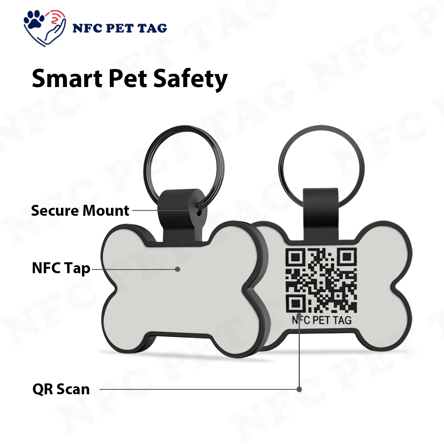 | Advantags | Personalized Silicone Pet Tag Flexible, bendable silicone is the name of the game for this NFC pet tag! It glides right over furniture, carpets, and pet beds without catching—no more tangles or annoyed wiggles from your energetic pet. Even during rough playdates or hiking adventures, it stays put on collars and never warps out of shape, so your furry friend can romp all day in total comfort. |